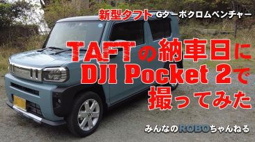 ダイハツ新型TAFTタフトの納車日に初乗りファーストインプレッションを純正ドライブレコーダーの映像にて。タフトのグレードであるGターボ クロムベンチャーの内外装やスカイフィールトップ、ダイハツ純正ナビ(alexaアレクサ対応)などのオプション装備をDJI Pocket 2にて撮影しご紹介しています。